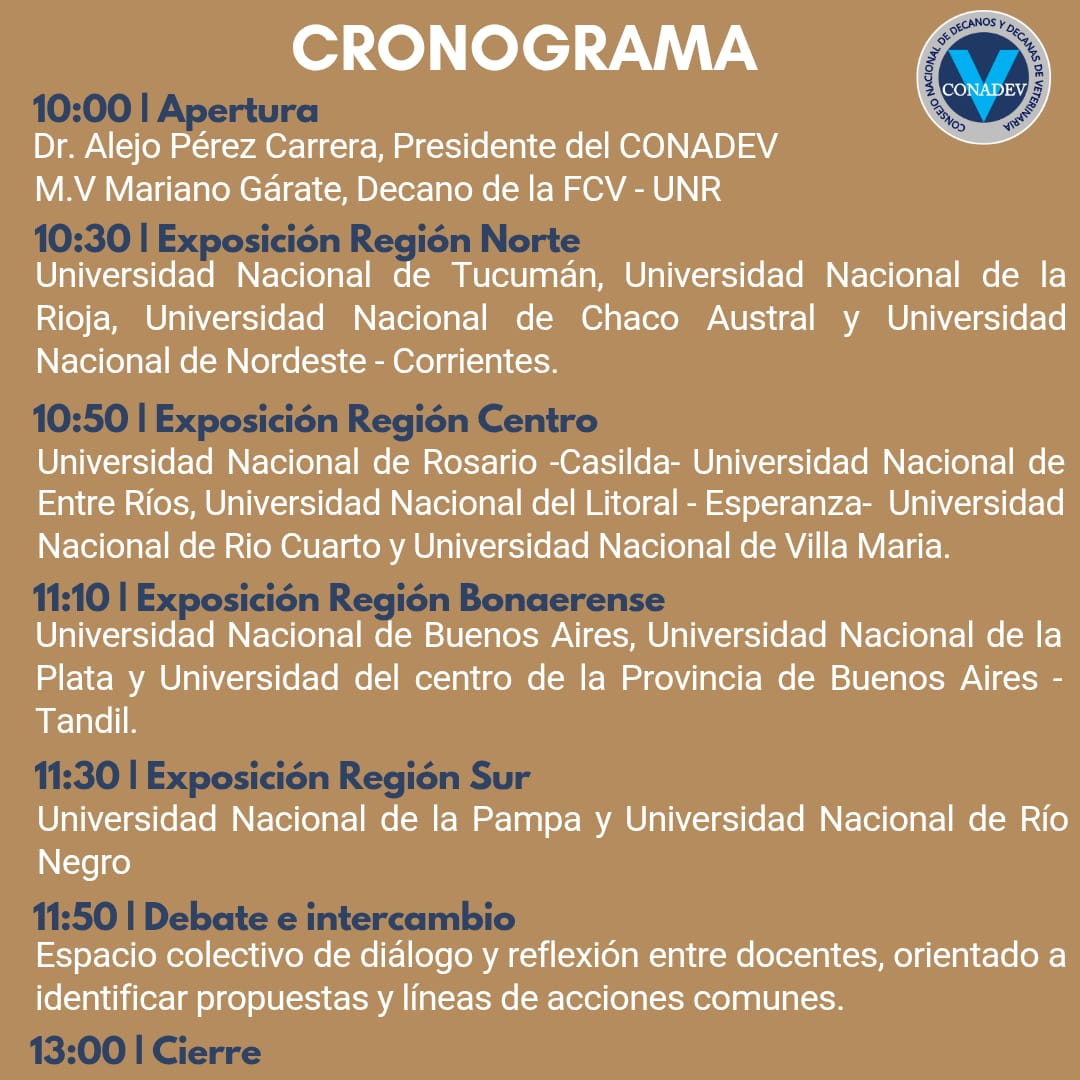 Organiza: Consejo Nacional de Decanas y Decanos de Veterinaria – CONADEV